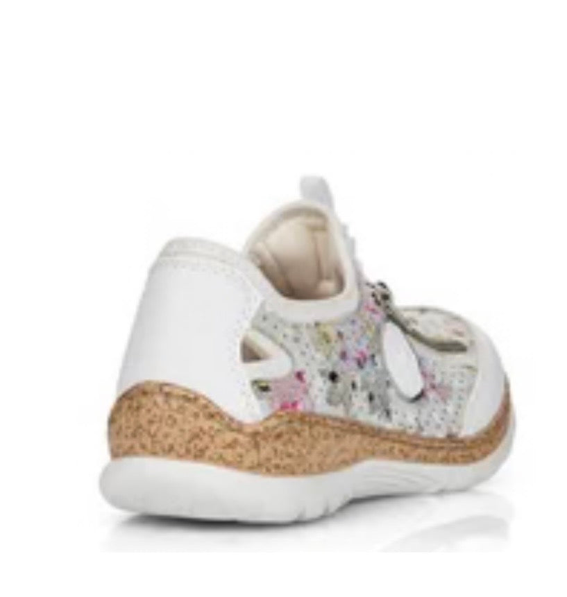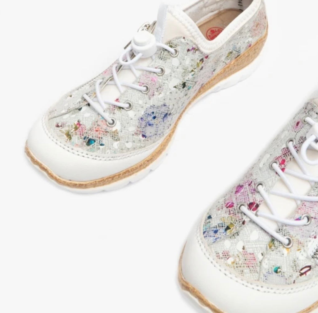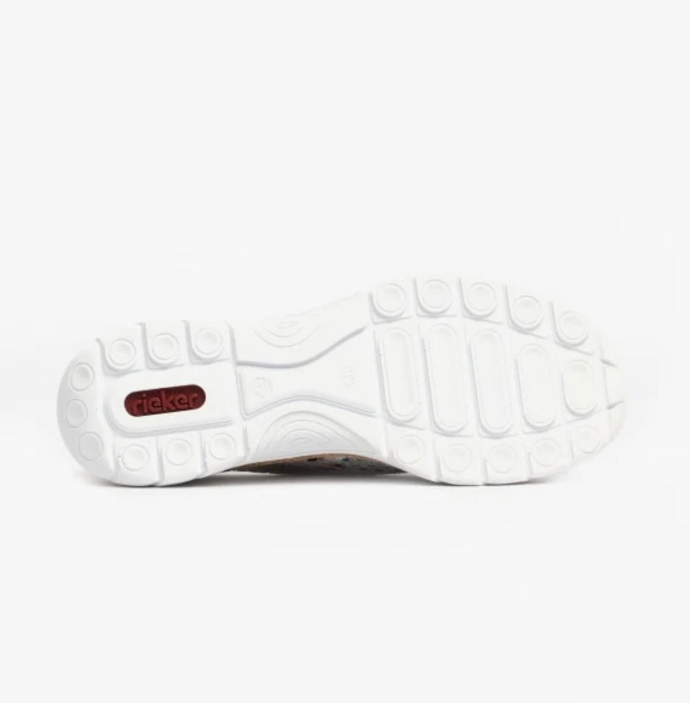 Ideal for the summer, these ladies slip on trainers from Rieker offer comfort and style. The print upper is given an urban edge with the chunky sole unit and false zip detailing. Rieker have used a bungee lace with sliding adjuster for a secure and easy to use fit. The addition of Rieker's MEMOSOFT technology in the insoles offers sublime cushioning using memory foam. The lightweight and flexible sole unit helps to increase the overall comfort of these ladies trainers.